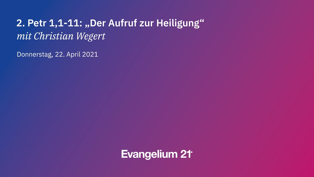 Bibel und Theologie Video Audio Der Aufruf zur Heiligung Vortrag von Christian Wegert 22. April 2021 Der E21-Podcast kann auch auf Spotify oder iTunes abonniert werden. Ein Vortrag von Christian Wegert auf der Hauptkonferenz 2021 in Hamburg.