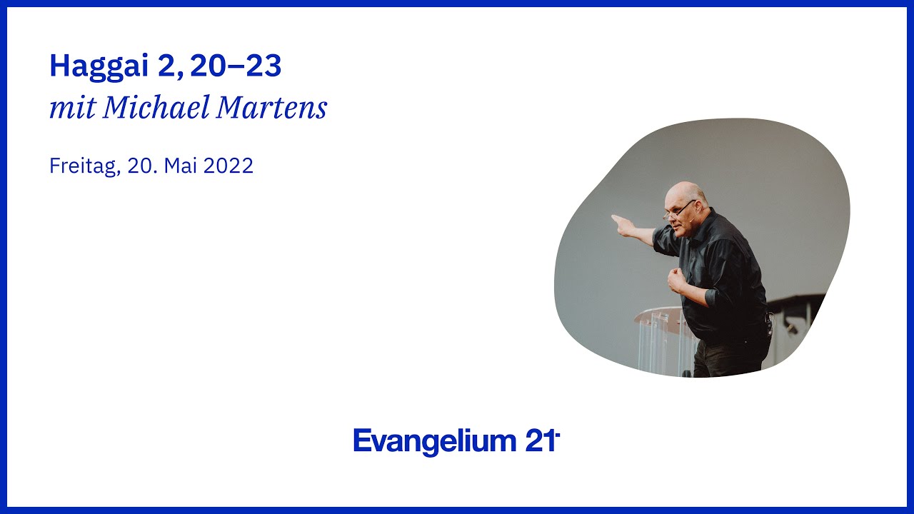 Bibel und Theologie Video Audio Haggai 2,20–23 Vortrag von Michael Martens 20. Mai 2022 Der E21-Podcast kann auch auf Spotify oder iTunes abonniert werden. Ein Vortrag von Michael Martens auf der Hauptkonferenz 2022 in Hamburg.