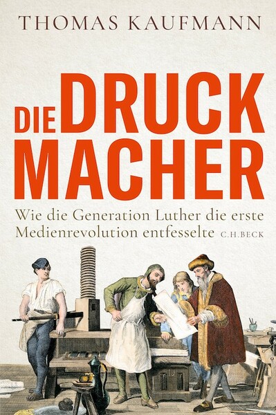 Thomas Kaufmann, Die Druckmacher: Wie die Generation Luther die erste Medienrevolution entfesselte, München: C.H. Beck, 2022, 350 Seiten, ca. 28 EUR.