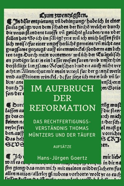 Der Deutsche Bauernkrieg liegt bald 500 Jahre zurück. Passend zum bevorstehenden Jubiläum hat der Mennonitische Geschichtsverein in seiner Schriftenreihe eine Aufsatzsammlung des mennonitischen Theologen und Historikers Hans-Jürgen Goertz unter dem Titel Im Aufbruch der Reformation: Das Rechtfertigungsverständnis Thomas Müntzers und der Täufer herausgebracht.