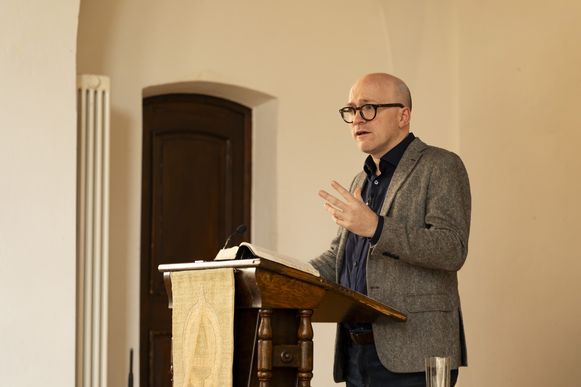 Sach führte die ca. 90 Konferenzteilnehmer in fünf Einheiten durch das 2. Buch Mose. Er ermutigte dabei die Zuhörer, genauer und tiefer in die biblische Erzählung hineinzuschauen und dabei spannende Entdeckungen zu machen. Beispielsweise begegne uns die Rettung und das Handeln Gottes, das er im Kleinen an Mose vollzog, auf einer größeren Ebene am gesamten Volk: So wie Mose durch das Wasser (in einer „Arche“) gerettet worden war, Gott am Berg Sinai begegnete und durch die Beschneidung von Gottes Gericht gerettet worden war (vgl. 2Mose 4,24–26), so wurde auch das Volk durch das Passahlamm und durch das Wasser (d.h. am Schilfmeer) gerettet und begegnete Gott am Sinai. Mose sei dabei ein Vorschatten auf Christus, dem das wahre Volk Gottes auch in seiner Rettung und Auferstehung nachfolge. Sach zeigte auch auf, wie sich Gottes Heilslogik bereits in 2. Mose entfalte: Gott rettet das Volk durch einen Mittler aus der Sklaverei und gibt ihnen als bereits Geretteten das Gesetz, damit sie ihm in seiner Gegenwart (durch die Stiftshütte) dienen können. Genau so rette Gott auch heute durch Jesus Menschen, damit sie ihn bereits jetzt in seiner Gegenwart anbeten können. In Vollendung geschehe das im vollendeten Reich Gottes, im Himmel.