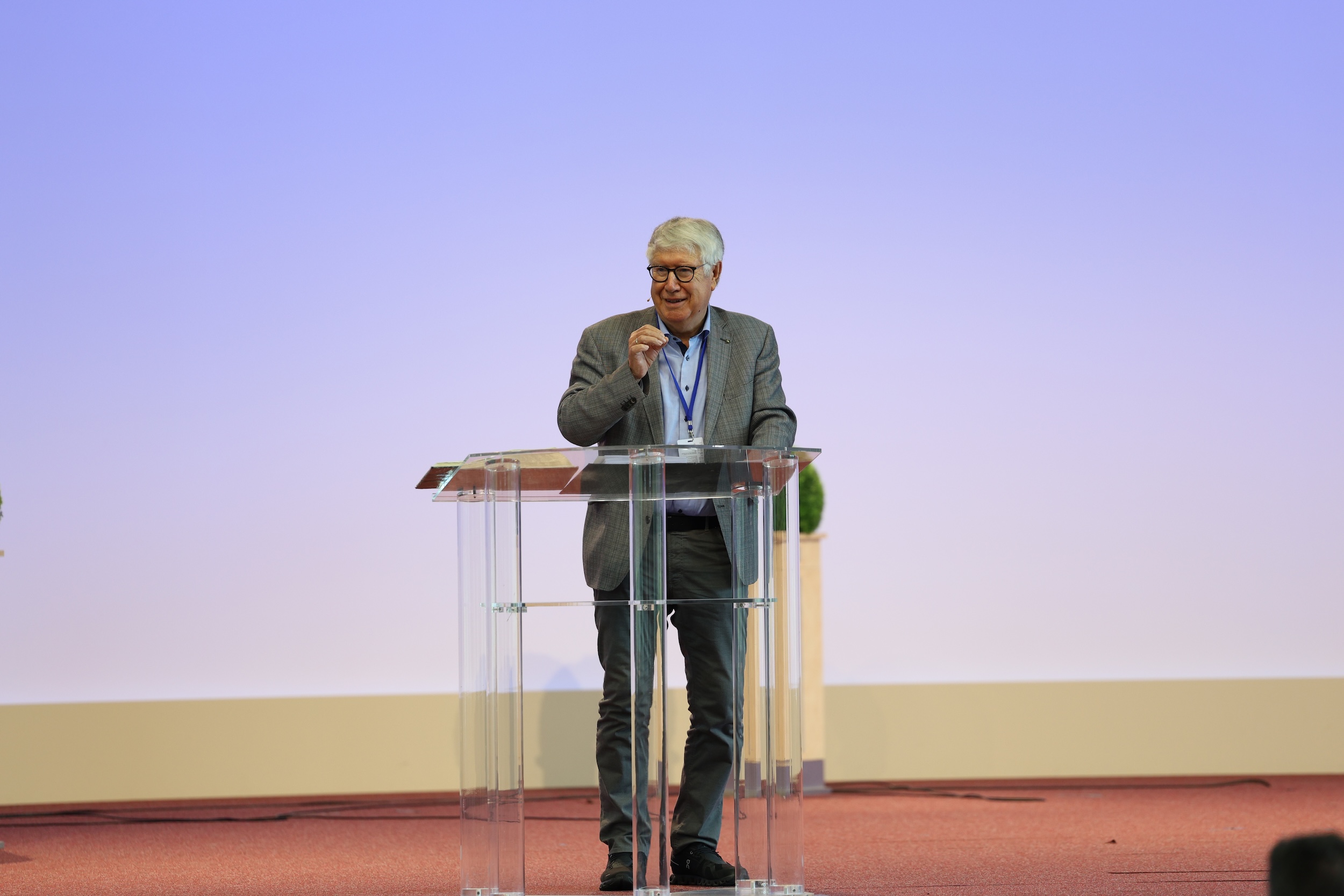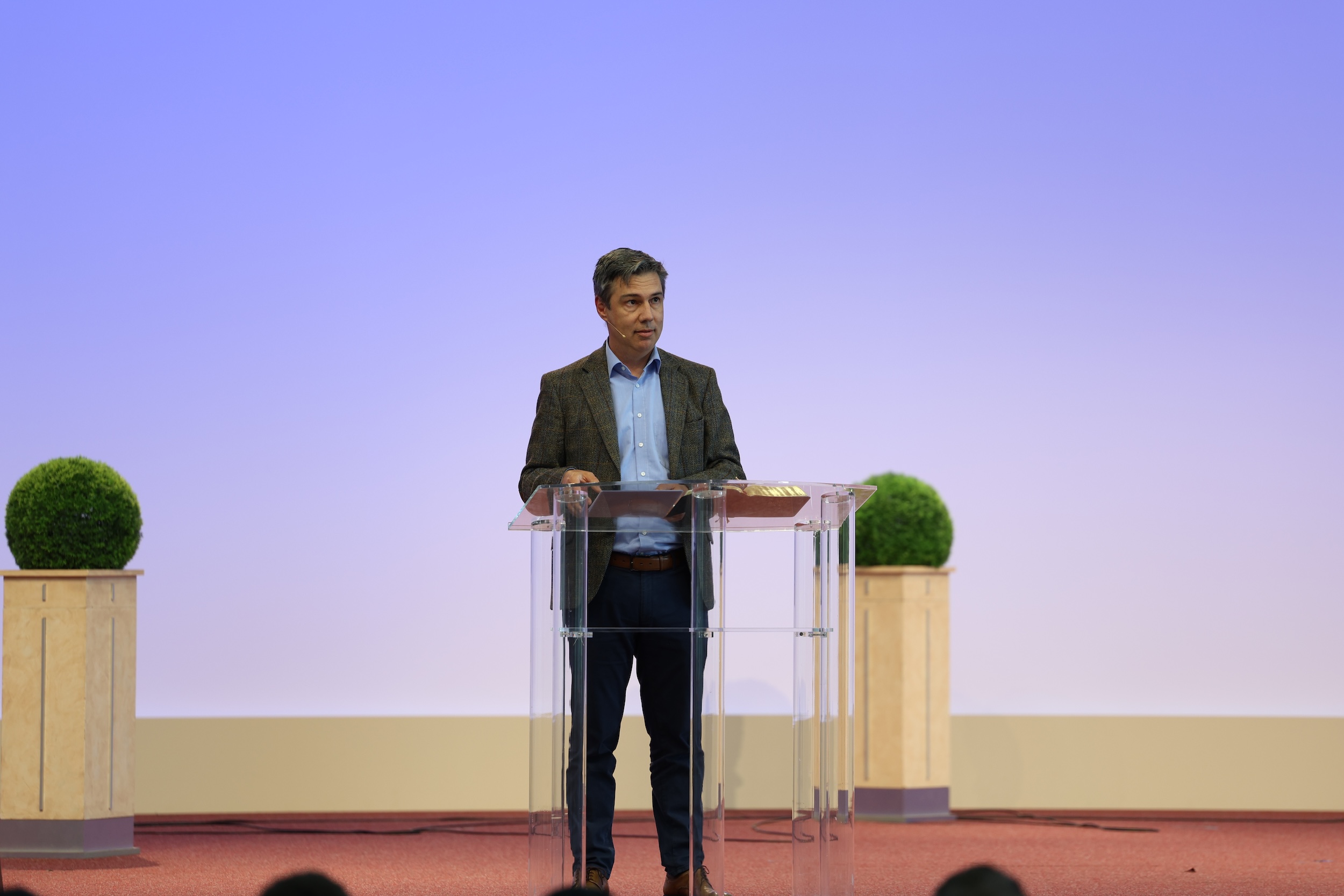 „Wir leben in einer zutiefst religiösen Welt voller Propheten, die uns jeweils ihre besondere Version vom guten Leben verkaufen wollen – mit oder ohne Jesus“, erklärte anschließend Pastor Rudolf Tissen (EFG Unna) in seiner Auslegung von 1. Johannes 4,1–6. Wir dürfen uns nicht einbilden, theologische Rechtgläubigkeit oder 20 Jahre Diensterfahrung allein könnten uns davor schützen, falschen Versprechungen Glauben zu schenken. Falsche Propheten, egal ob religiös oder nicht, versprächen uns ein erfülltes Leben jenseits von Christus. Daher sei die Gabe der Geisterunterscheidung, von der Paulus im 1. Korintherbrief 12,10 spricht, in unserer Zeit eine unfassbar relevante Gabe. Allein der Geist der Wahrheit befähige uns, die Stimme Gottes in einer Welt voller Halbwahrheiten und Lügen herauszuhören. Nur er lenke die Aufmerksamkeit der Kinder Gottes hin zu Christus. Der Geist forme sie zu leidenschaftlichen Bekennern der ganzen Wahrheit über Jesus und wecke eine tiefe Liebe zu ihm. Tissen verwies auf den englischen Theologen Michael Reeves, der einmal gesagt hat: „Der Geist macht aus selbstbezogenen Menschen, Christus-fokussierte Menschen.“