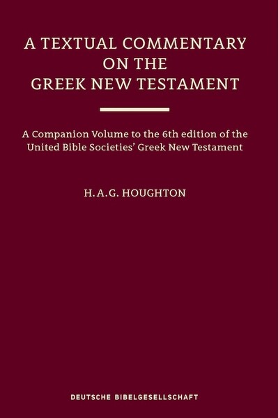 H.A.G. Houghton, A Textual Commentary on the Greek New Testament: A Companion to the Sixth Edition of the United Bible Societies’ Greek New Testament, Stuttgart: Deutsche Bibelgesellschaft, 2025, 620 Seiten, 32,00 Euro.
