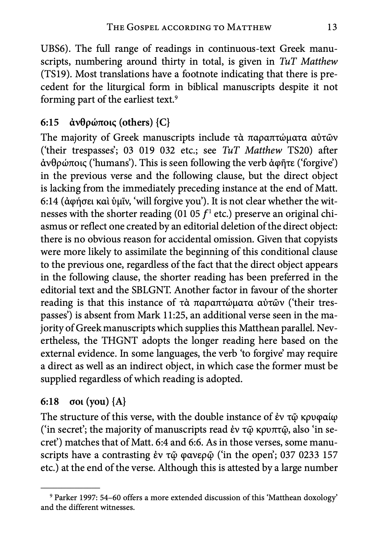 Auf eben diese „non-specialists“ (S. VII) ist der Textual Commentary ausgerichtet. Er soll dem Leser helfen, die Arbeit der Textkritiker nachzuvollziehen und sich ein Stück weit eine eigene Meinung zu bilden.
