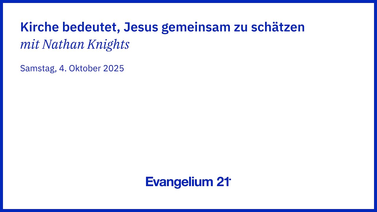 Bibel und Theologie Video Audio Kirche bedeutet, Jesus gemeinsam zu schätzen Vortrag von Nathan Knight 4. Oktober 2025 Der E21-Podcast kann auch auf Spotify oder iTunes abonniert werden. Ein Vortrag von Nathan Knight auf der E21-Regionalkonferenz Österreich 2025.