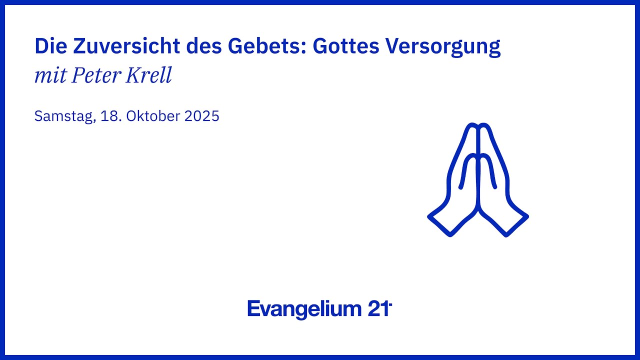 Bibel und Theologie Video Audio Die Zuversicht des Gebets: Gottes Versorgung Vortrag von Peter Krell 18. Oktober 2025 Der E21-Podcast kann auch auf Spotify oder iTunes abonniert werden. Ein Vortrag von Peter Krell auf der E21-Regionalkonferenz Südost 2025