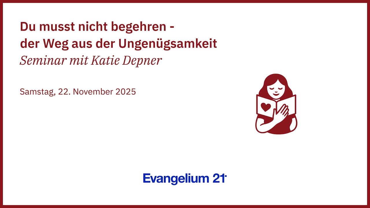 Leben als Christ Video Audio Du musst nicht begehren – der Weg aus der Ungenügsamkeit Vortrag von Katie Depner 22. November 2025 Der E21-Podcast kann auch auf Spotify oder iTunes abonniert werden. Ein Seminar von Katie Depner auf der E21-Frauenkonferenz 2025.