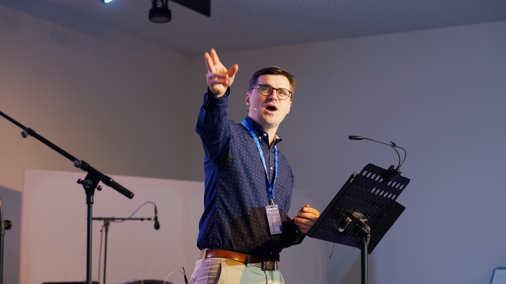Am zweiten Tag der Konferenz stellte Boris Giesbrecht heraus, dass nicht nur Hiob, sondern alle Menschen bis heute Gott anklagen, wenn sie mit schweren Situationen konfrontiert werden. Leid fordere uns dazu heraus, uns den großen Lebensfragen zu stellen. Der einzige wirksame Tröster ist laut Giesbrecht der, der noch viel mehr Leid ertragen musste als wir: Jesus Christus.