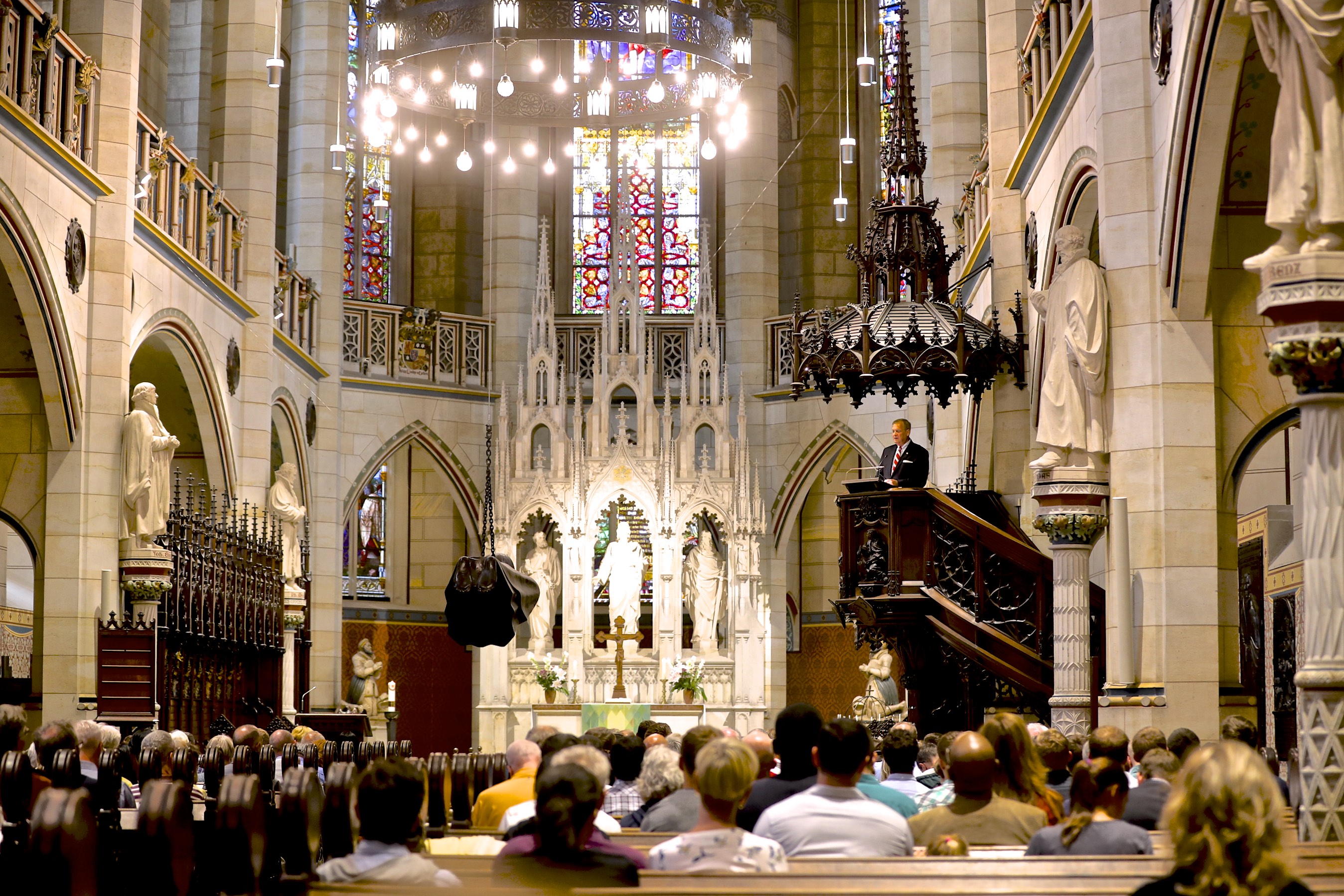 Die abschließende Einheit fand in der Schlosskirche statt. Das ist die Kirche, an die Martin Luther 1517 seine 95 Thesen schlug. Nach dem Singen von Ein feste Burg ist unser Gott legte Albert Mohler Römer 3 aus und das Evangelium, welches Luther wiederentdeckte und freimütig verkündigte.